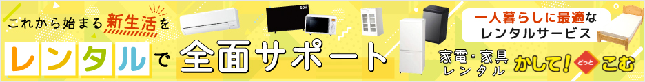家電・家具レンタル専門サイトです。家電・家具レンタル業界では最大級の品揃えで新品、中古商品それぞれ幅広く取り揃えています。一人暮らしや単身赴任などの際に使えるシングル向けアイテムから、増築時などの仮住まい先でご家族でもご利用いただけるファミリー向けアイテムまで、豊富に取り揃えています。